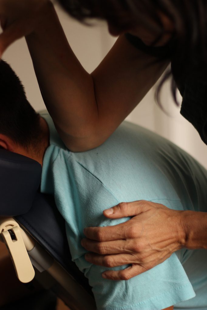 => Le Shiatsu assis se déroule sur une chaise ergonomique, spécialement conçue pour ce traitement. Le receveur a ainsi le corps complètement détendu, son poids étant réparti sur différents points d’appui.